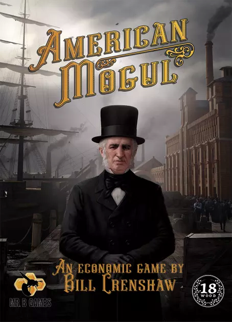 American Mogul is an action selection game set in 19th century America. You are a captain of industry trying to expand your mercantile empire by investing in markets and building cities to produce resources and establish control. You use resources to complete lucrative contracts and earn money and VPs. You buy companies to give you special powers. You navigate event cards each round and try to capitalize on destiny cards to earn additional VPs. At the end of each round, you may invest in your personal Foundation to unlock valuable bonuses. The game is playable by 1-4 players; playing time is about 3 hours once you know how to play.